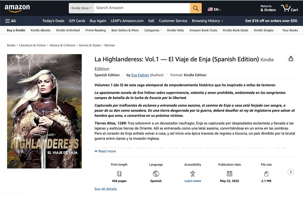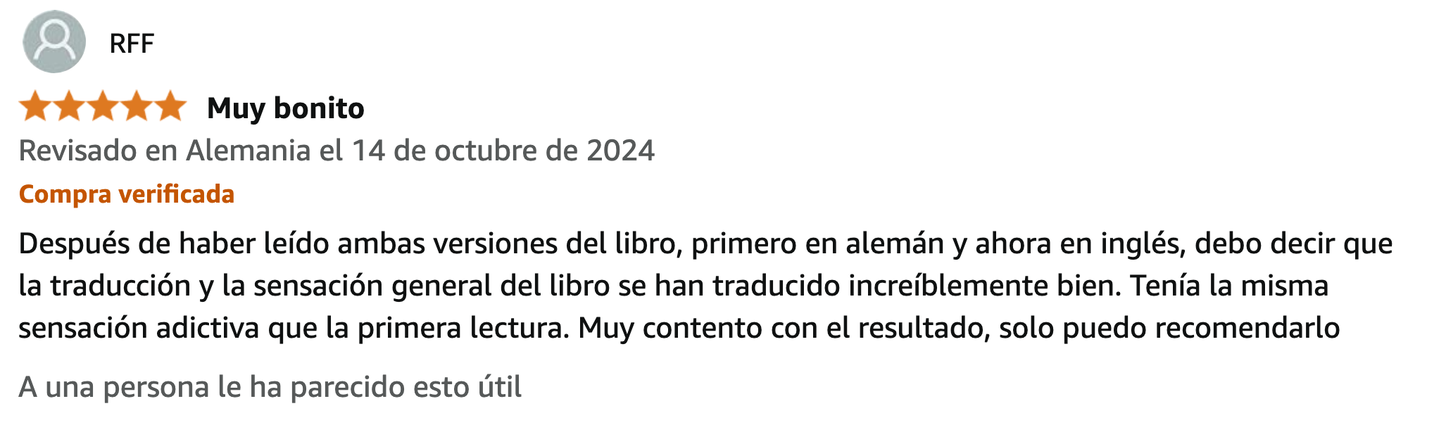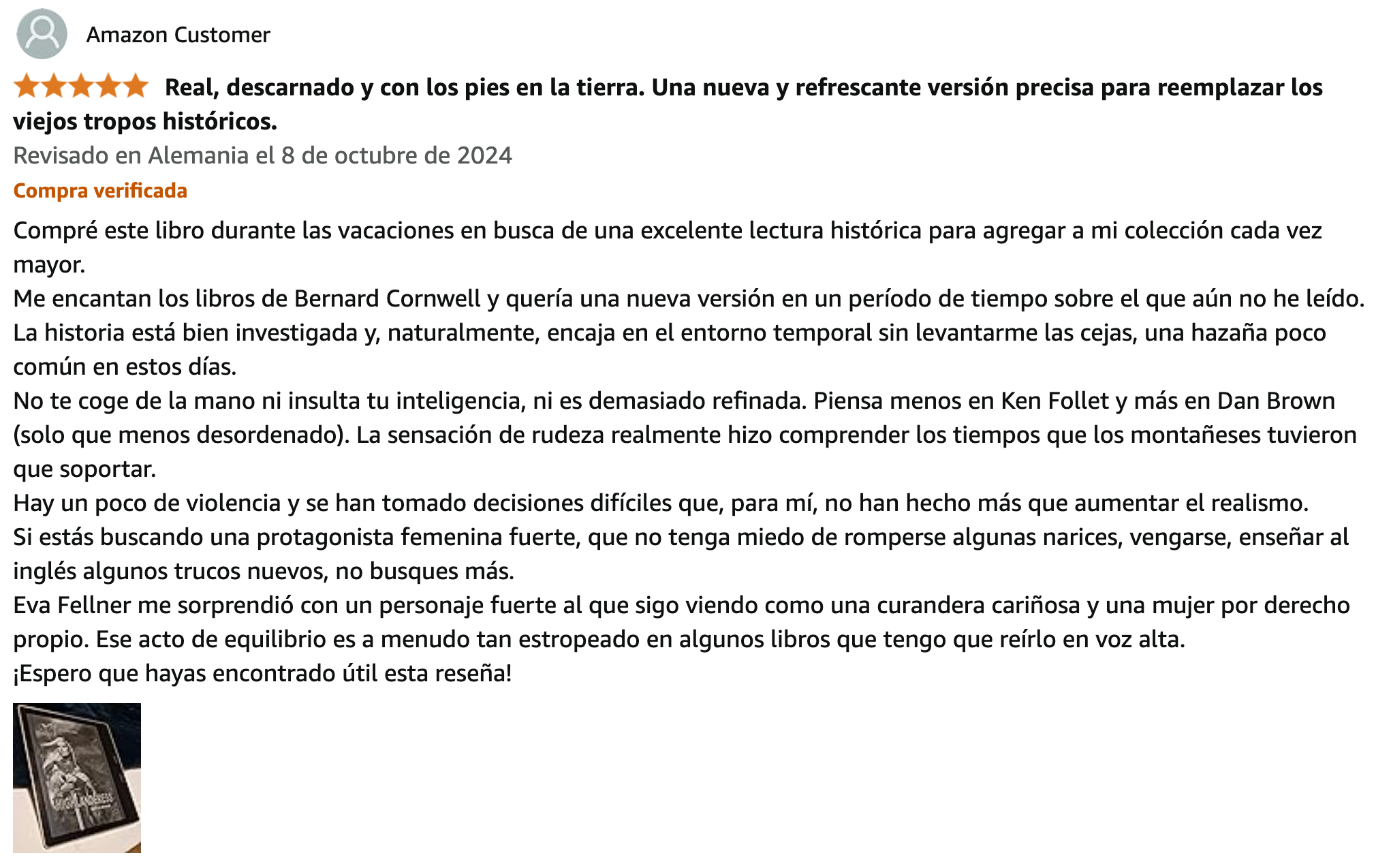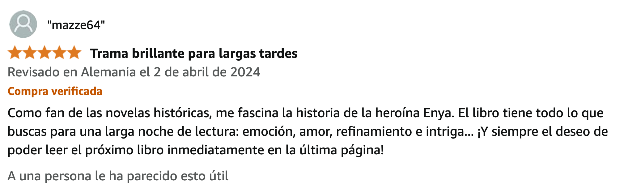 Todas estas reseñas provienen de la versión original en alemán de Die Highlanderin, traducidas automáticamente desde la página alemana de Amazon del Volumen 1. Ten en cuenta que "The Highlanderess" (al igual que "Die Highlanderin") es un término único, y a menudo se traduce simplemente como "La montañesa". Estas son solo algunas de las más de 1.200 reseñas entusiastas que puedes encontrar en Amazon. Próximamente también compartiremos reseñas orgánicas de la versión en inglés de The Highlanderess. Por ahora, disfruta de estas reflexiones y deja que te inspiren.